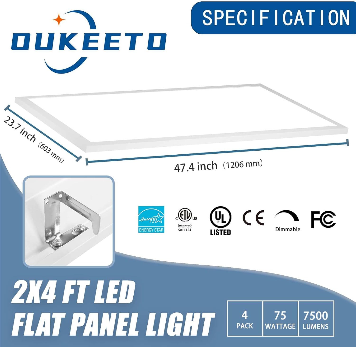 - Brighten up your space with this 2x4 FT LED Flat Panel Light Fixture! Packing 75W of power and smooth 0-10V dimming, it’s perfect for any room with its wide 120-277V range. Featuring 192 super-bright LEDs, it delivers a whopping 7500 lumens of steady, glare-free light that lasts over 55,000 hours. Switch effortlessly between cozy warm white (3000K), crisp bright white (4000K), and cool white (5000K) to match your mood or task. Built tough with a no-yellowing lens and top-notch heat dissipation, it’s energy-smart too—replacing 420W fluorescent bulbs while saving you up to 80% on power. Say goodbye to flicker and hello to comfy, eye-friendly lighting!