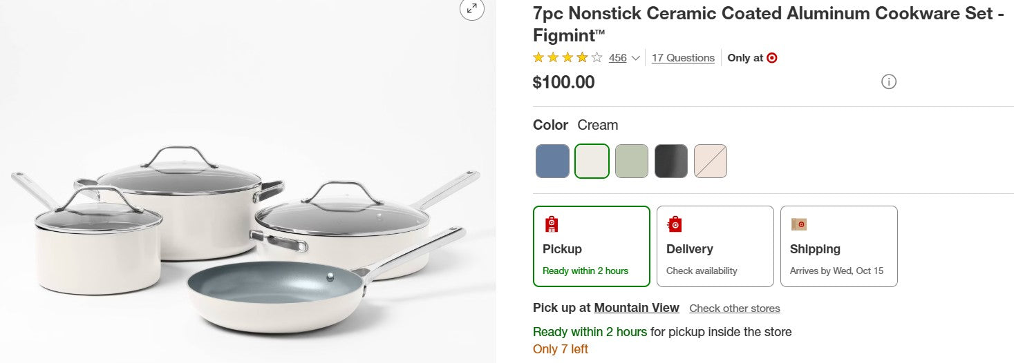 7pc Nonstick Ceramic Coated Aluminum Cookware Set