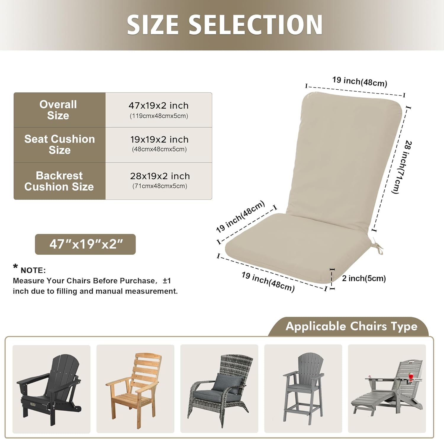 Adirondack Chair Cushion Set of 2-19''x19'' Seat & 19''x28'' Back