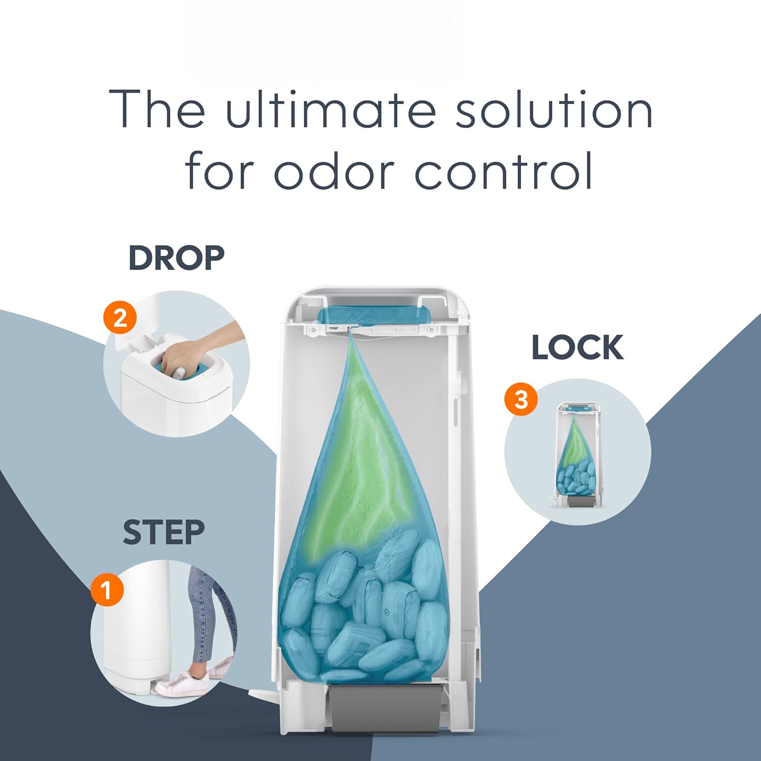 Keep your nursery smelling fresh with the new Diaper Genie Signature Pail, featuring odor-locking clamps that trap smells inside. No need to bend down—just use the foot pedal for easy, hands-free disposal. With a wide opening and room for up to 47 newborn diapers, it’s super convenient. Plus, the Easy Roll Refill includes 18 perforated bags on a roll, making diaper changes quick and mess-free. (Refill not included.)