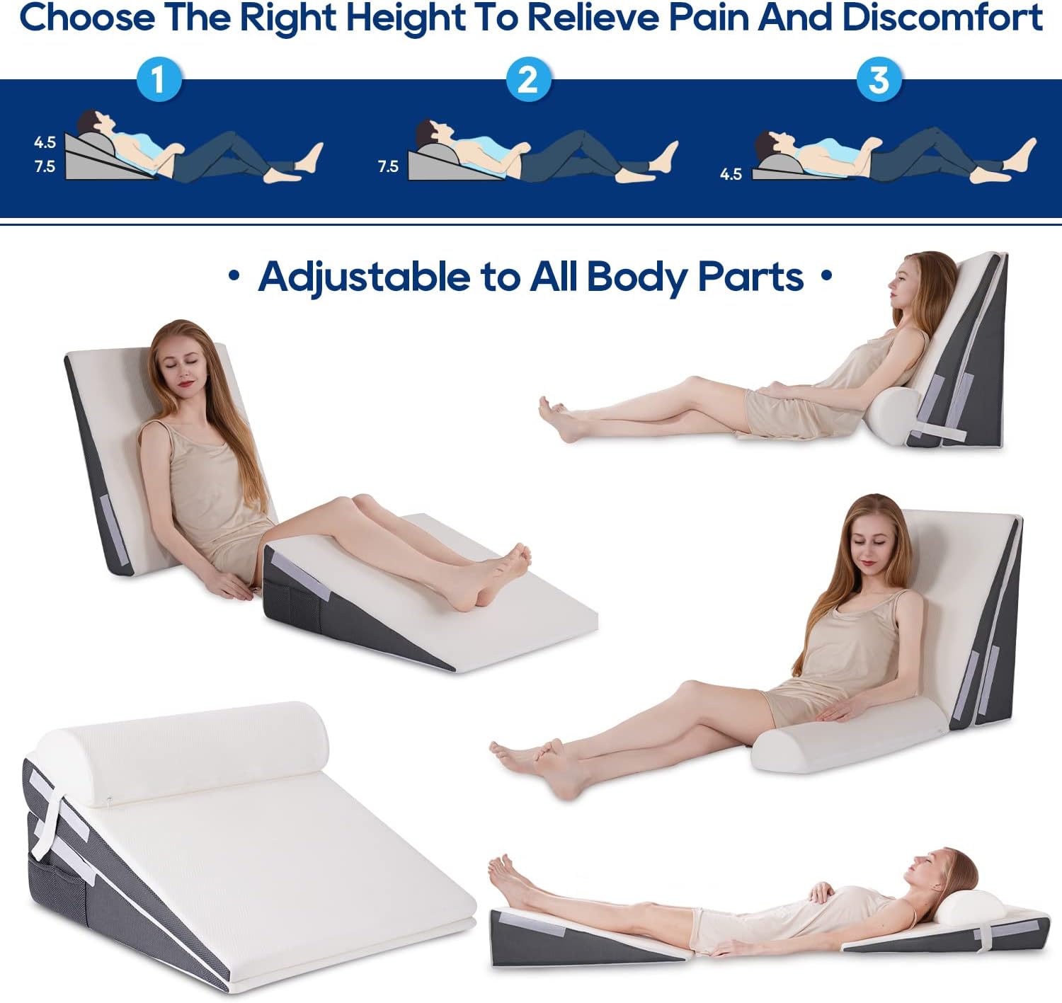 Experience ultimate comfort and versatility with the GOHOME 3-in-1 Memory Foam Bed Wedge Pillow. Combining a 7.5" bottom pillow and a 4.5" top pillow, you can easily create a 12" pillow to suit your needs. The innovative design features hook and loop fasteners on both sides, giving you the freedom to choose your preferred height. The breathable mesh side and knitted air layer outer cover provide a cooling effect, preventing discomfort from excessive heat. Plus, the smooth zipper design allows for easy removal and machine washing. Transform your sleeping experience with GOHOME.
