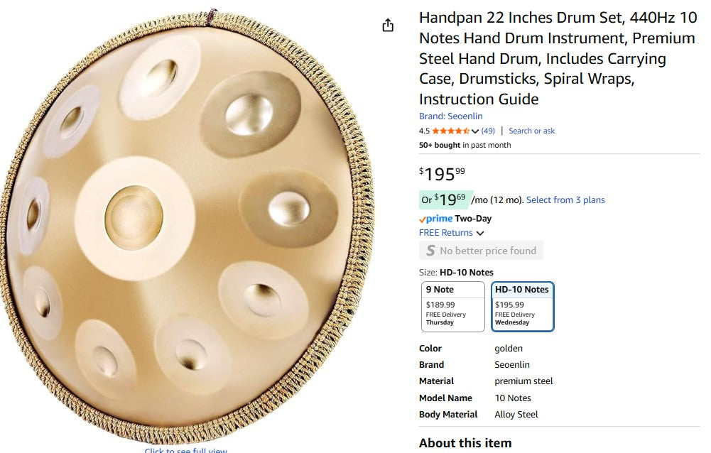 🎵 Simple to Master: This 22-inch handpan drum features 10 distinct notes in D minor (A3, Bb3, C4, D3, D4, E4, F4, G4, A4, C5). No gear needed—just your hands to drum up some magical tunes! 🎵 Top-Notch Build: Made from 1.2mm thick premium steel with intense heat treatment for extra strength and rust resistance. 🎵 Perfectly Tuned: Hand-crafted tuning delivers spot-on tones and harmonies for a truly mesmerizing sound experience. 🎵 Magical Vibes & Multi-Use: With its clear, dreamy tones, it’s perfect for yoga, music classes, gigs, or gifting something special and musical.