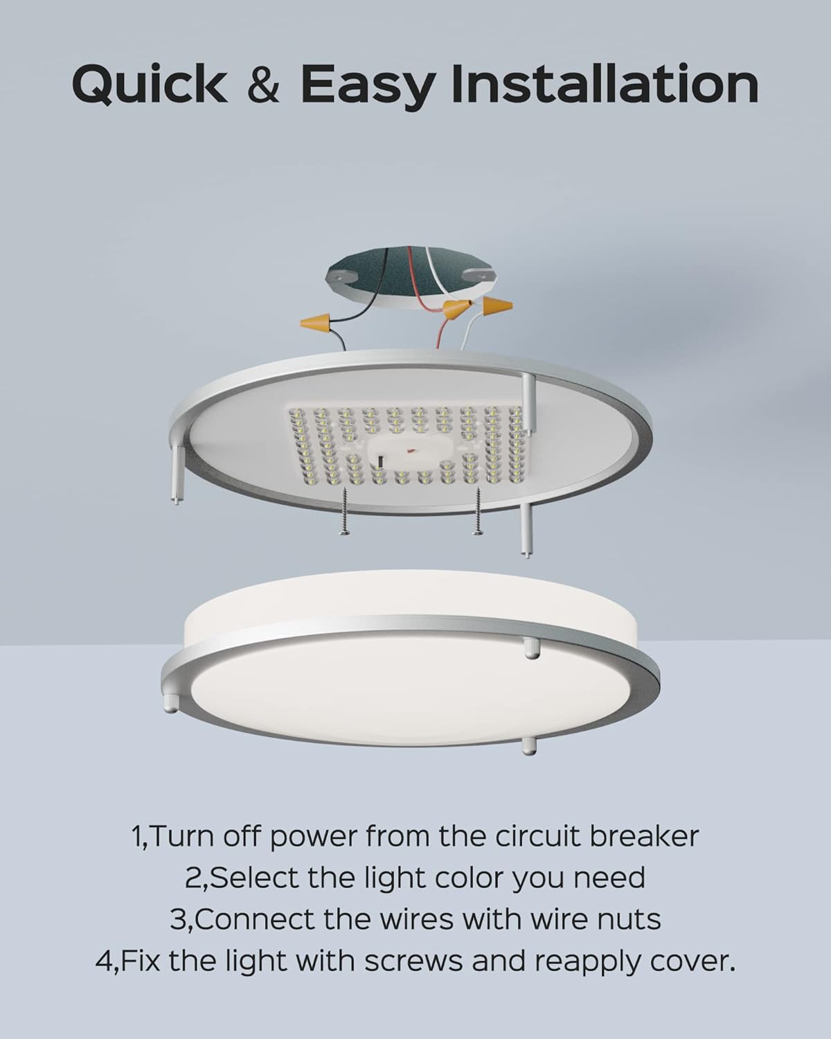 Brighten up your space with JACKYLED’s upgraded 13-inch flush mount ceiling light! Packed with 80 super-bright LEDs and using just 36 watts, it shines as bright as a 180-watt bulb while saving you 80% on energy. With a lifespan of 50,000 hours, that’s over 17 years of glow time! Plus, you get to pick your perfect vibe from five color temps—warm, soft, neutral, white, or daylight—just slide the switch before installation and set the mood for relaxing, working, or anything in between.