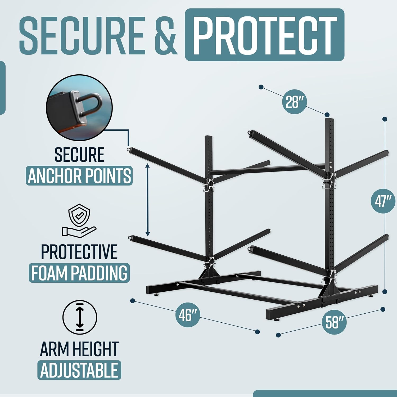 Teal Triangle Freestanding Kayak Storage Rack - Storage Rack for 4 Kayaks or Canoes