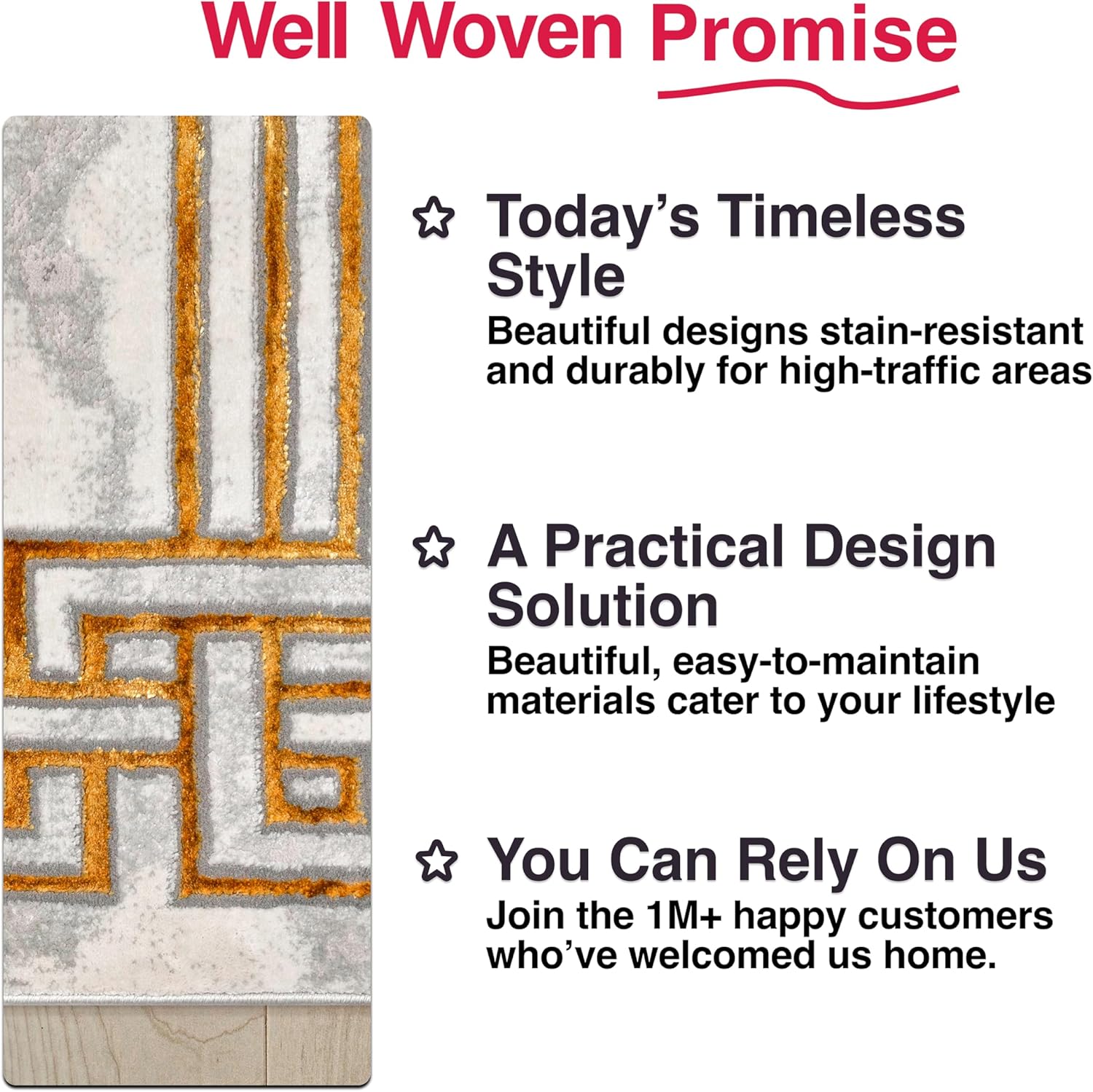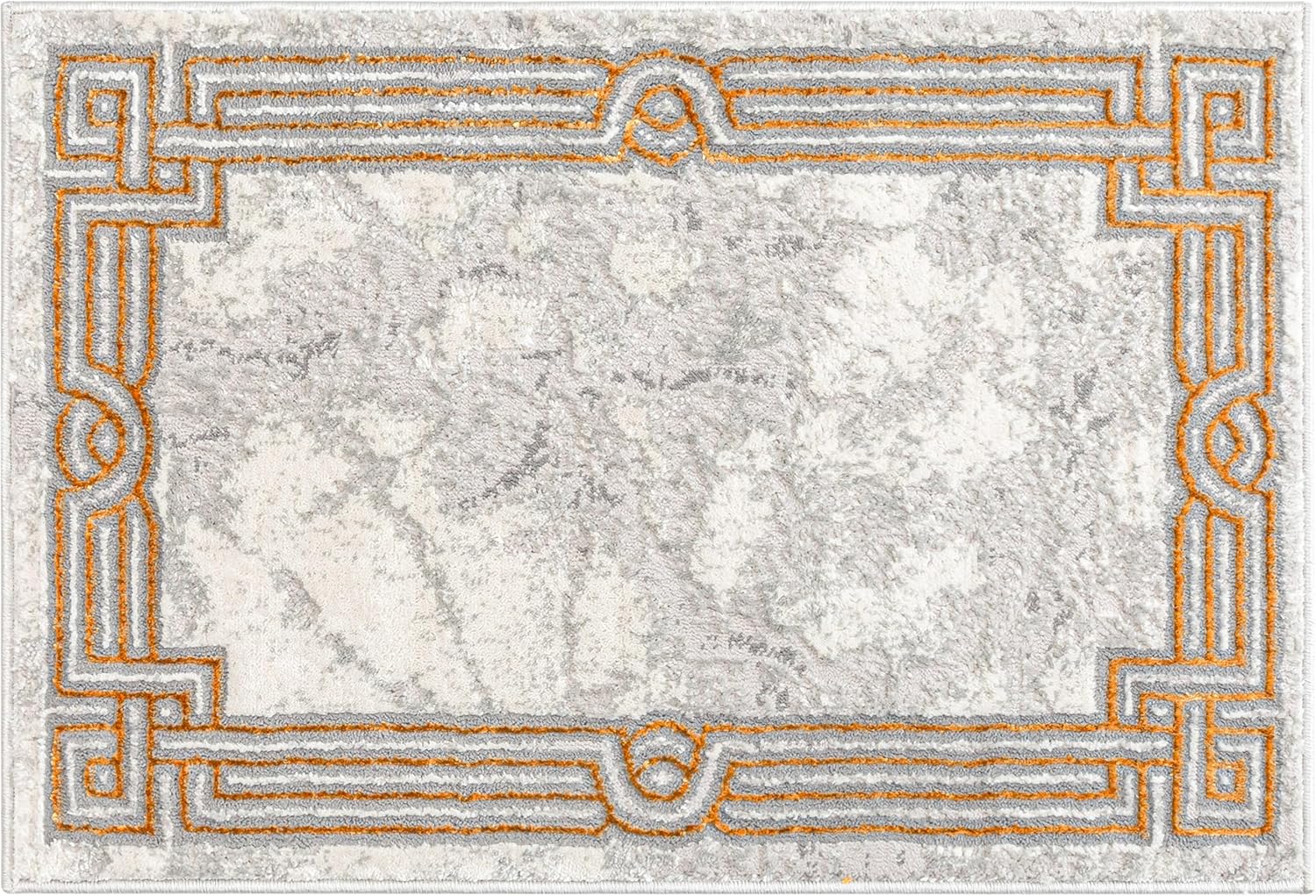 Well Woven Fairmont Collection Huntington Grey Gold & Ivory Marble Border Elegant & Soft 2x3