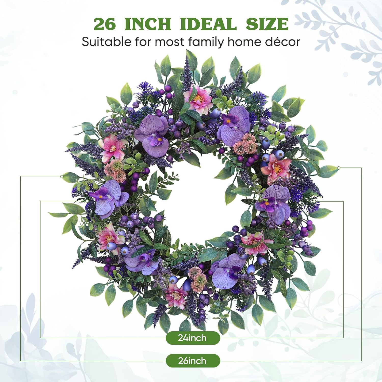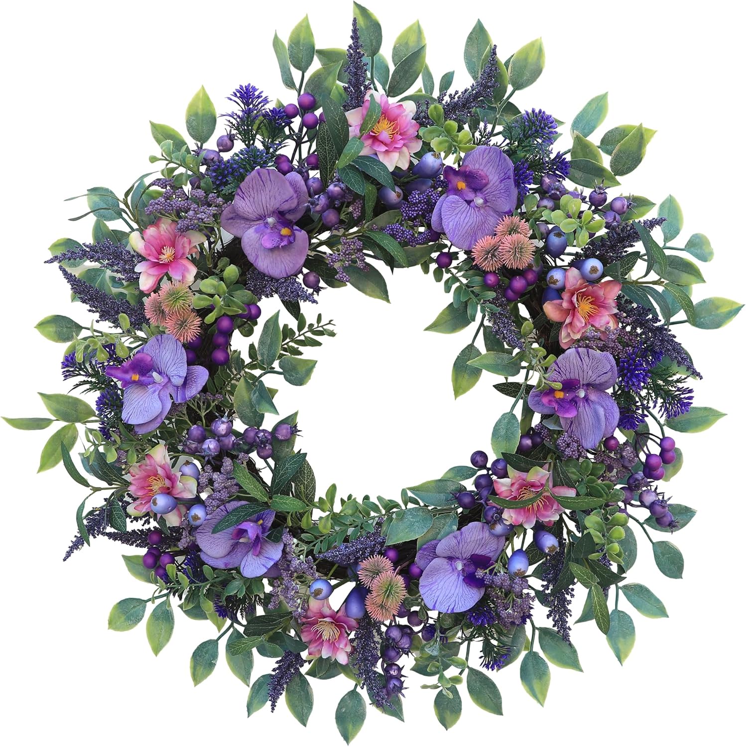 Wreaths for Front Door 24 inch Spring Summer Wreath with Purely Handmade Phalaenopsis Orchids